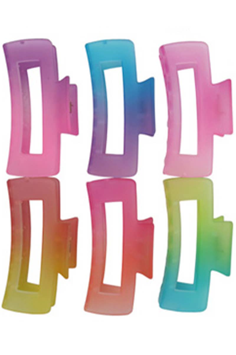Matte Ombre Gradient Hollow Out Block Translucent Plastic Clip Y2K Fashion Hair Claw -Dimensions: 4.25" * 1.5" * 1.5" -Assorted Color -100% Plastic -CA Prop 65 Advisory