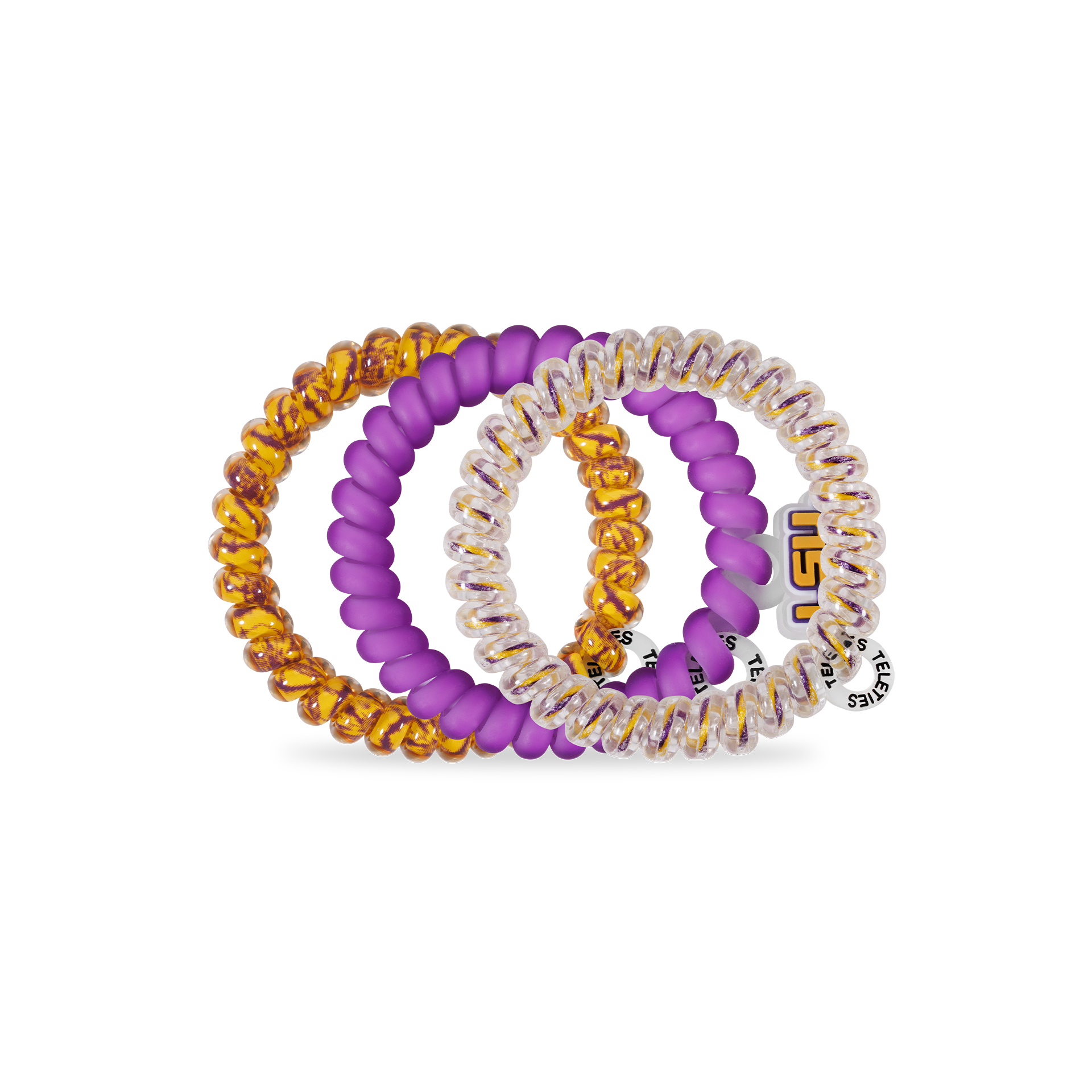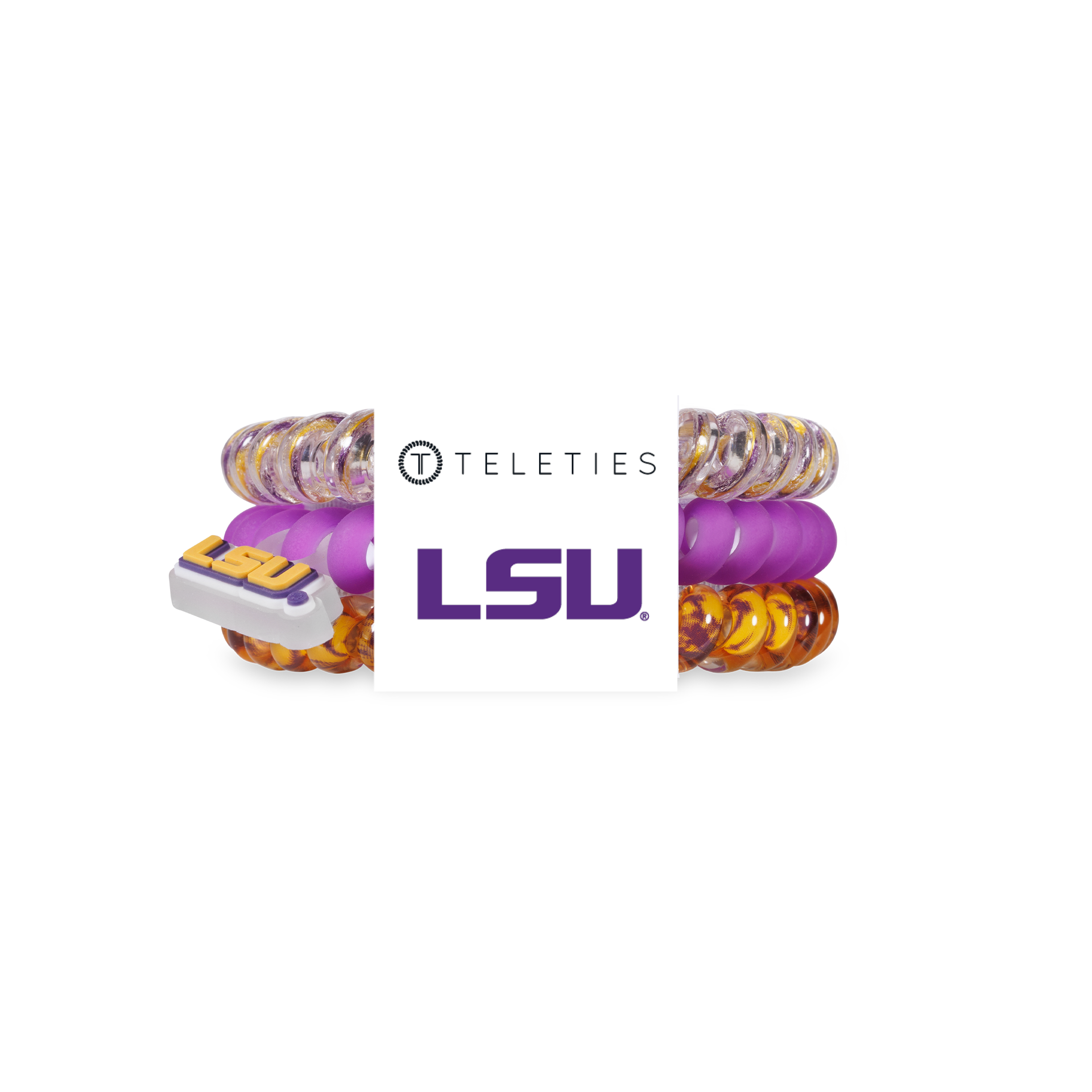Cheer on LSU in style with the TELETIES, Geaux Tigers! Small Hair Ties in Purple and Gold offer a strong grip without damage, doubling as a chic wrist accessory when not in use. Your new favorite hair essentials all year round. Shop your favorite Louisiana State University hair accessories now! Geaux Tigers!